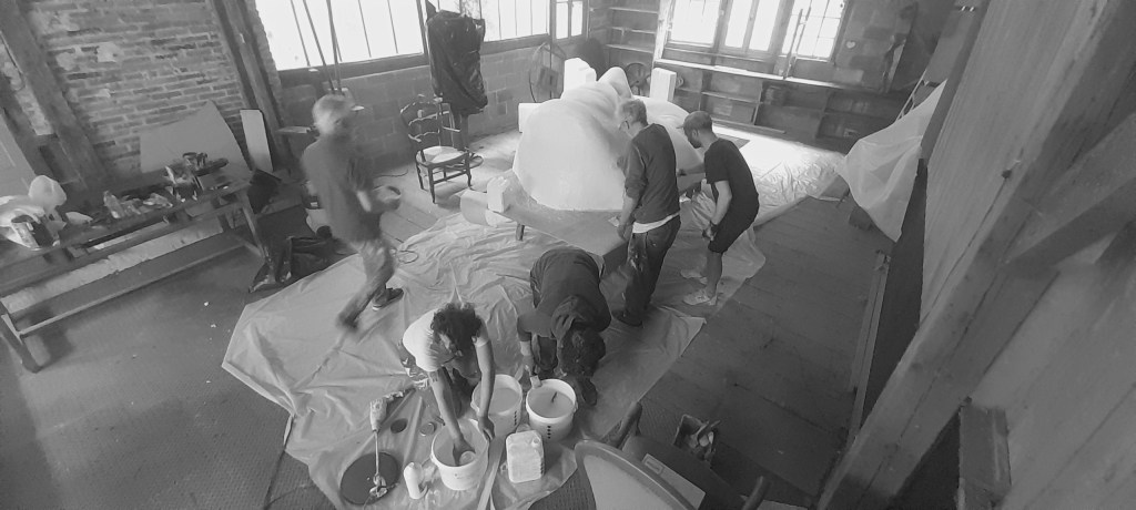 Une fois le concept défini, l’équipe de fabrication prend le relais. Menuisiers, métalliers, peintres décorateurs et sculpteurs donnent forme aux décors. Chaque élément est réalisé avec précision pour garantir un rendu esthétique, fonctionnel et durable, en tenant compte des contraintes de montage et de transport.